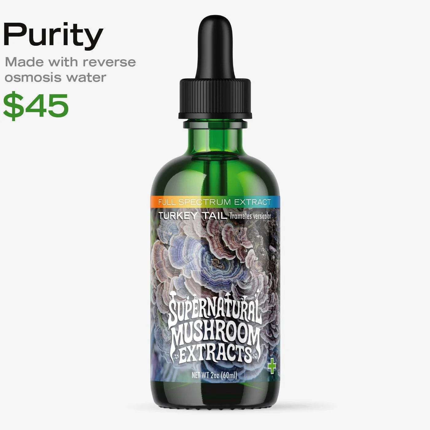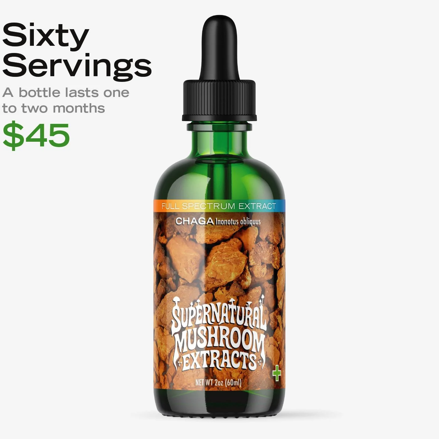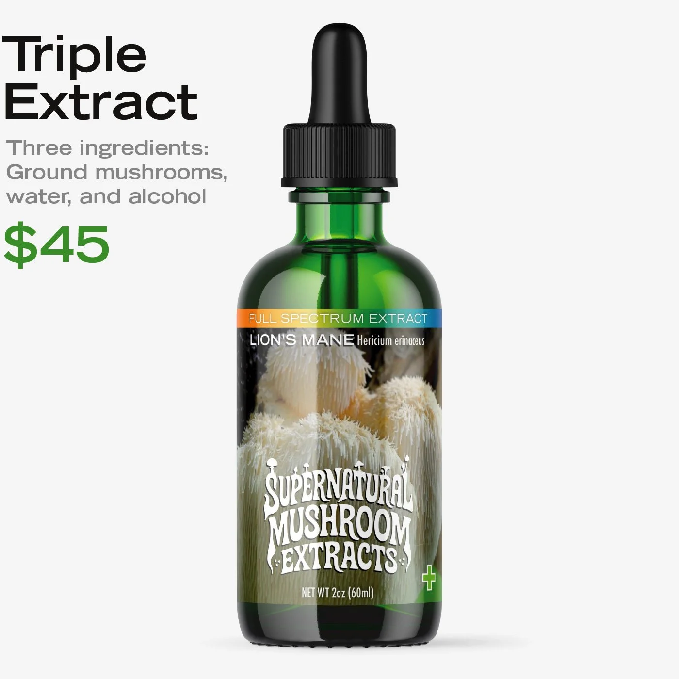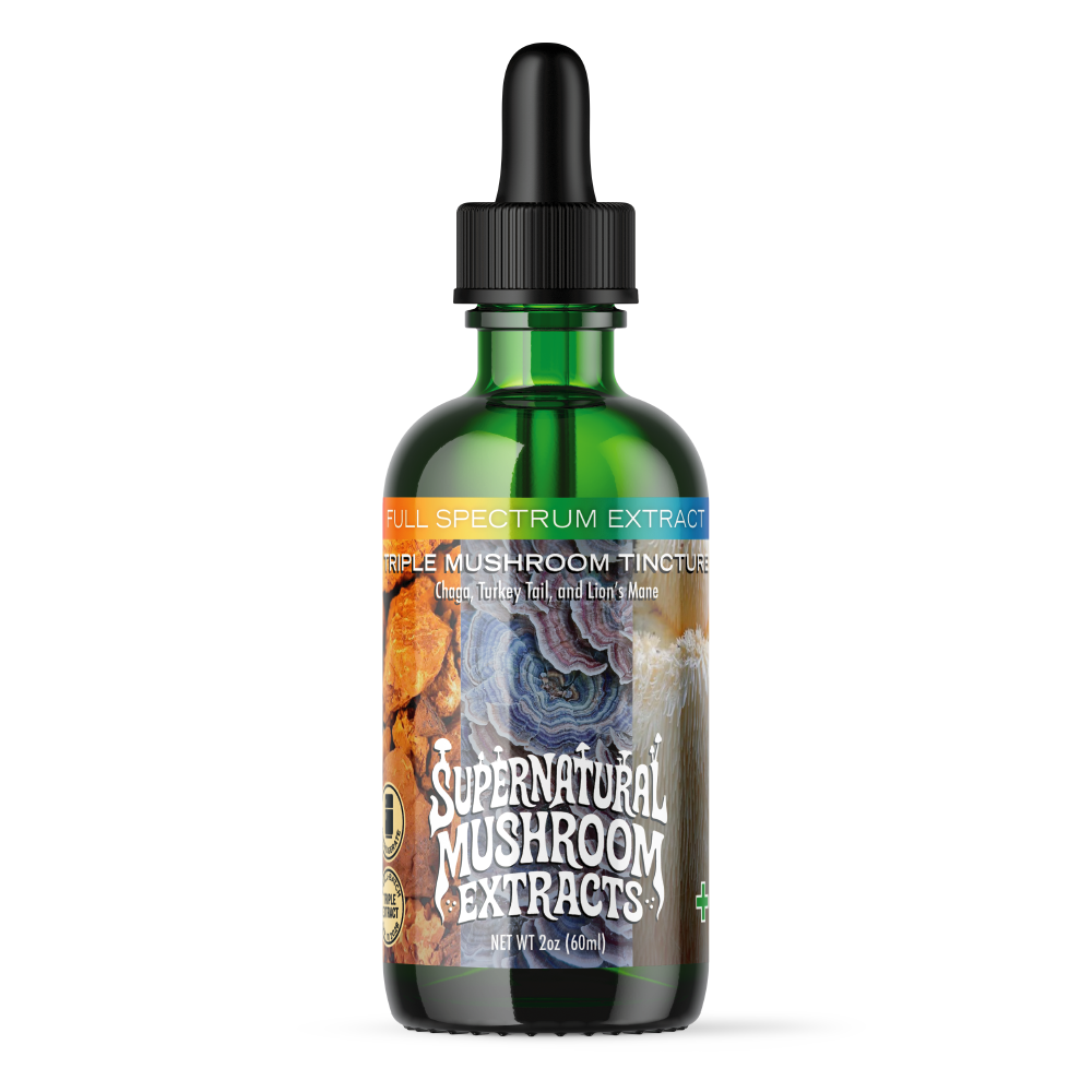 Supernatural Mushroom Extracts performs quadruple extractions to ensure all compounds are pulled from the mushroom. Extraction vials contain two water extractions combined with two alcohol extractions. They are balanced at 25% alcohol to maintain a long refrigerated shelf life of two years. Gently shake before using.